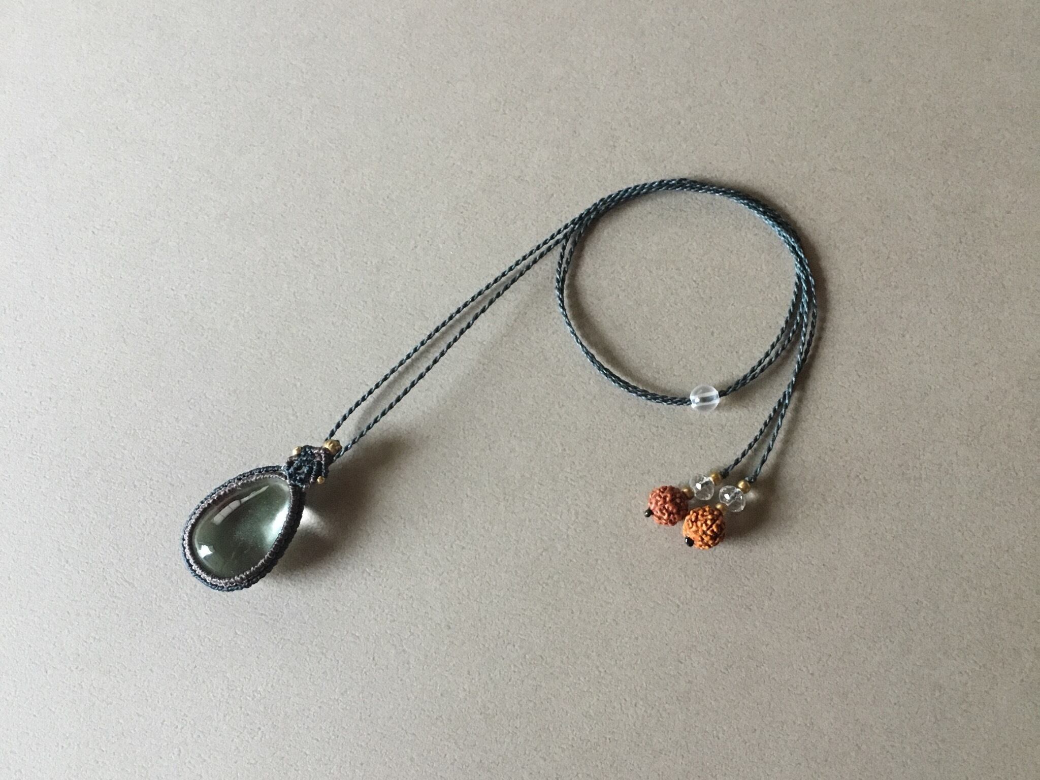 装飾:ルドラークシャ(菩提樹の実・5面)、天然水晶、真鍮