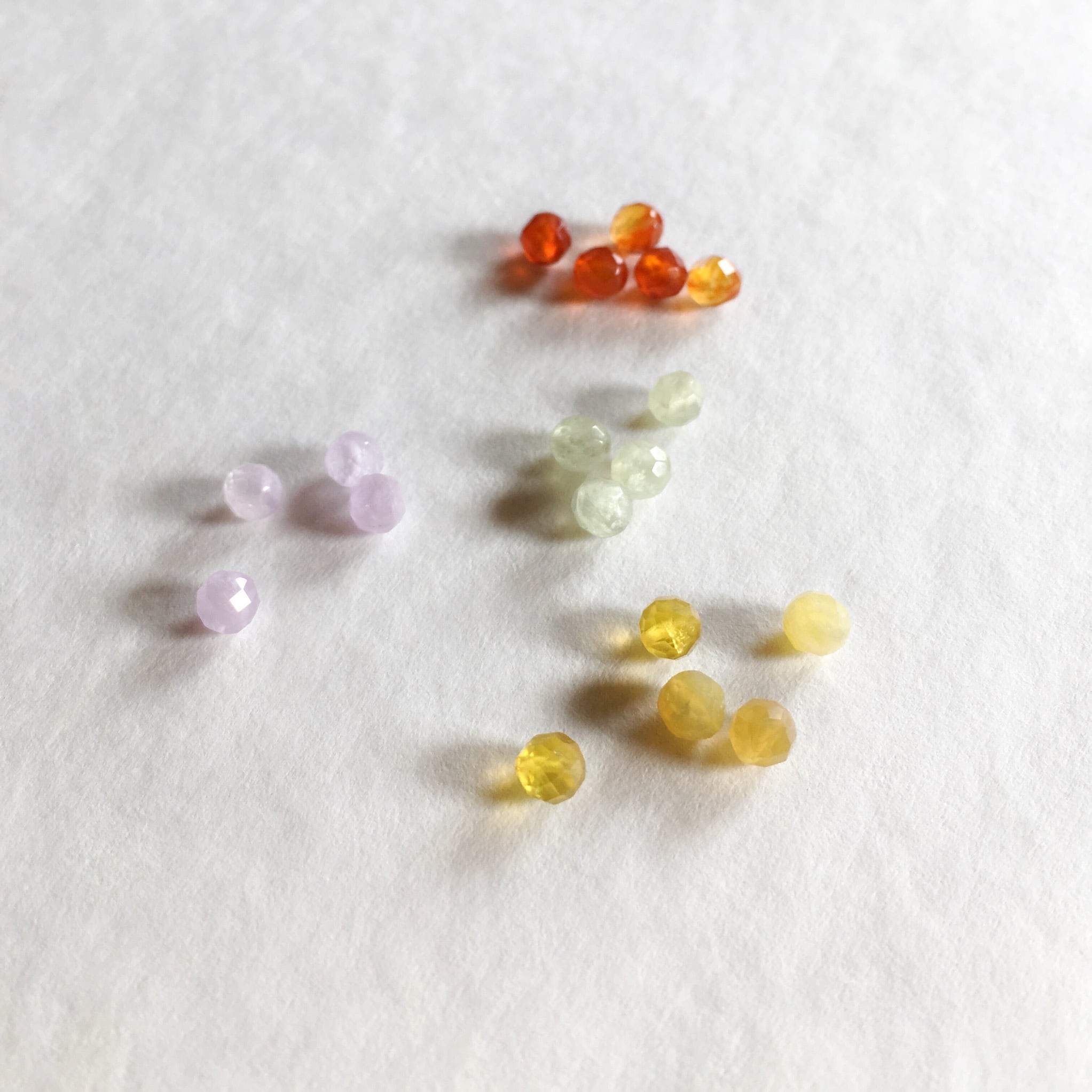 使用石:ラベンダーアメシスト、コスモオーラ(ブラジル産アメリカ加工)、ブルーレースカルセドニー、プレナイト 、イエローオパール、オレンジムーンストーン、カーネリアン(全て4mm玉)