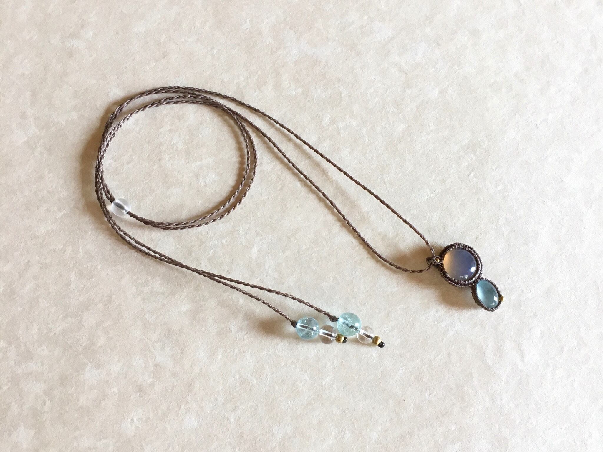 アクアマリン+グレーオニキスmacramé necklace