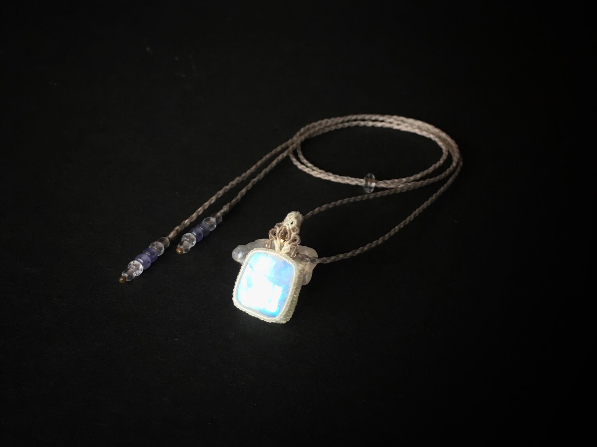 ホワイトラブラドライト macramé necklace