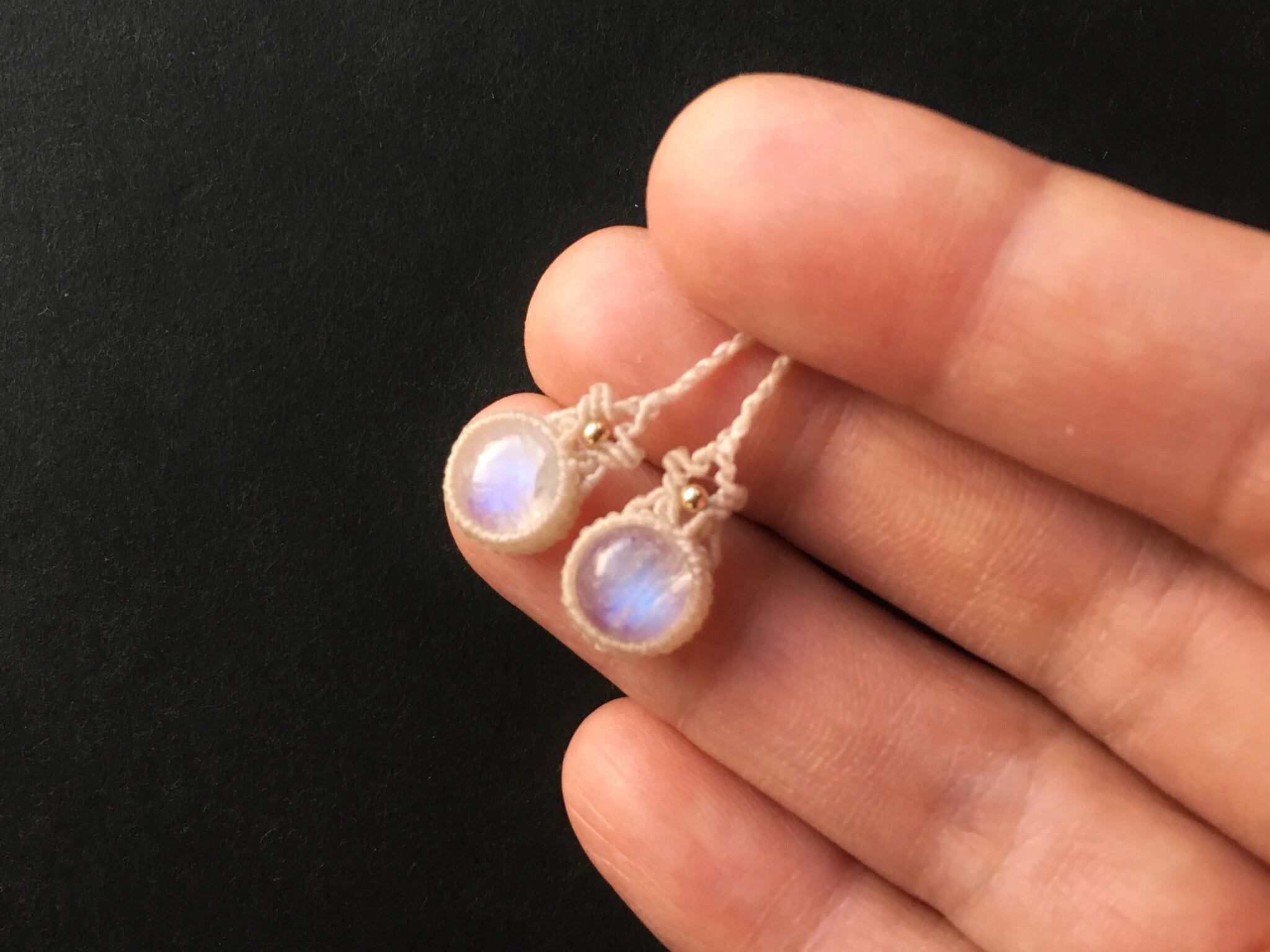 ホワイトラブラドライト macrame earrings
