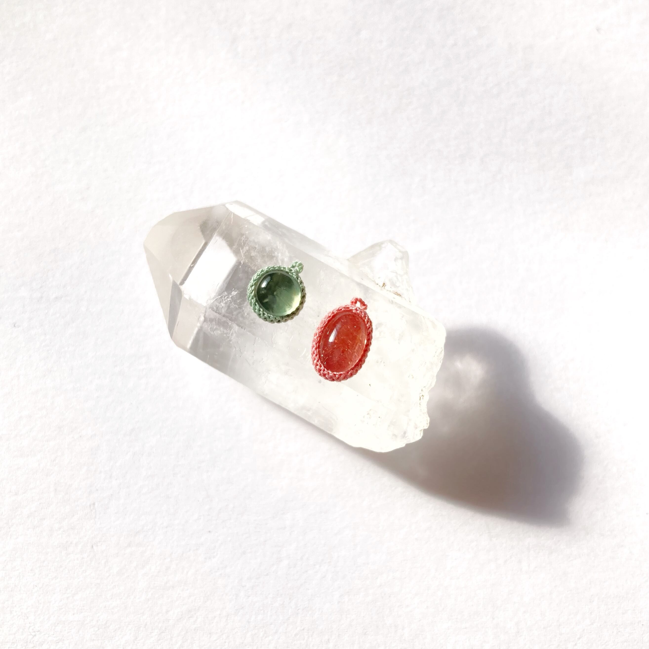 使用石:ストロベリークォーツ(カザフスタン産)9×6×4mm、プレナイト6×6×3mm