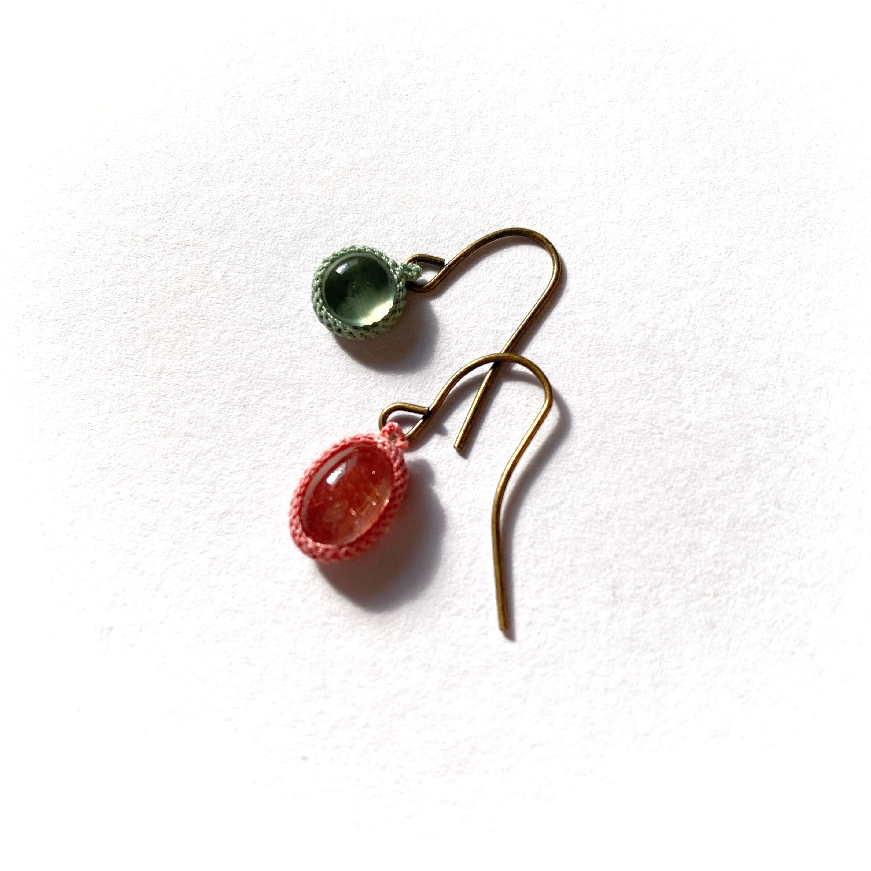 カザフスタン産ストロベリークォーツ+プレナイト crochet earrings